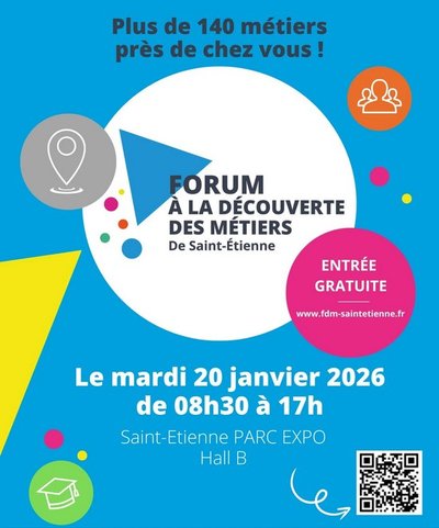 La dixième édition du forum « A la Découverte des Métiers » de Saint-Etienne se tiendra le mardi 20 janvier 2026 de 8h30 à 17h au Parc Expo - Hall B, 23 rue Ponchardier.
