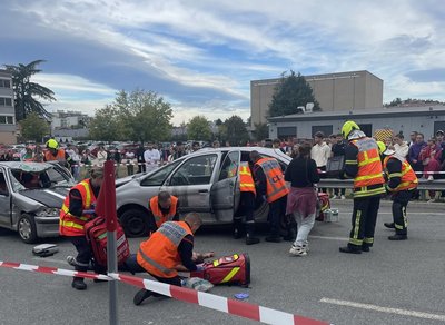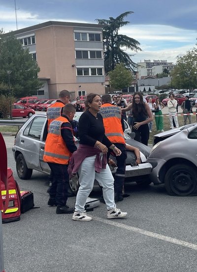 Les élèves et leurs accompagnateurs ont, sur le site de la caserne des pompiers de Saint-Étienne, vécu un accident à l’instant T, avec tous les acteurs : pompiers, police, SAMU, ainsi que des membres de la préfecture. Ce fut une expérience très réaliste.