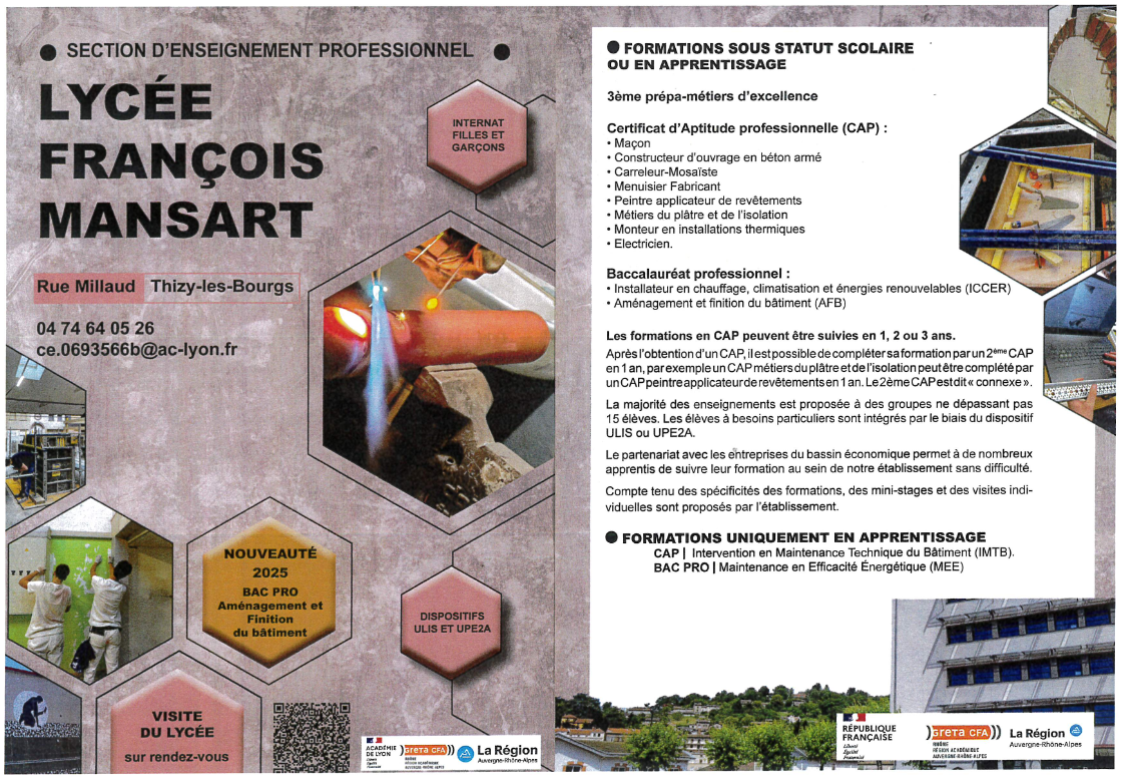 Le lycée François Mansart, Thizy-les-Bourgs, ouvre à la rentrée 2025 un bac’ pro’ "Aménagement et Finition du Bâtiment" (AFB).
