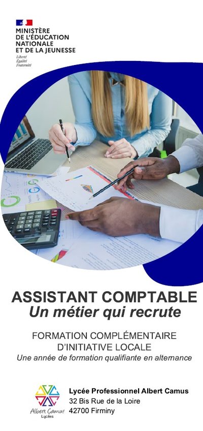 Une FCIL (formation complémentaire d’initiative locale) Assistant comptable ouvre en septembre 2025 au sein du LP Albert Camus.