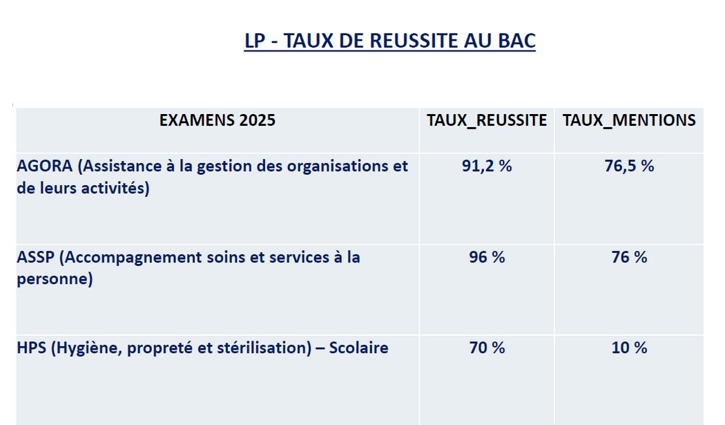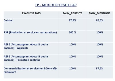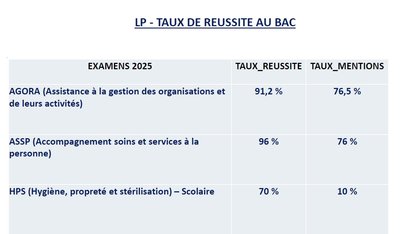 LP - Résultats aux examens 2025