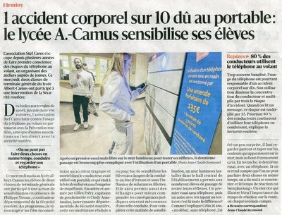 Le lycée Albert Camus sensibilise ses élèves Article paru dans La Tribune Le Progrès du 26 septembre 2026 Article mis en ligne le 26 septembre 2025 par Agnès Granjon