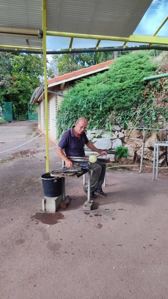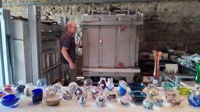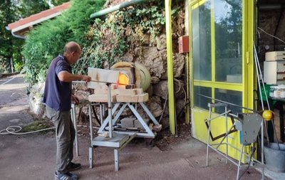 Cette journée s’est achevée par une dernière visite à l’atelier du souffleur de verre : Pierre Marion qui a confectionné pour les élèves un vase blanc avec des liserés noirs chauffés à plus de 1000 degrés ! M. Marion a d’ailleurs travaillé pour les maisons Marcon (célèbres cuisiniers) de st Bonnet Le Froid.